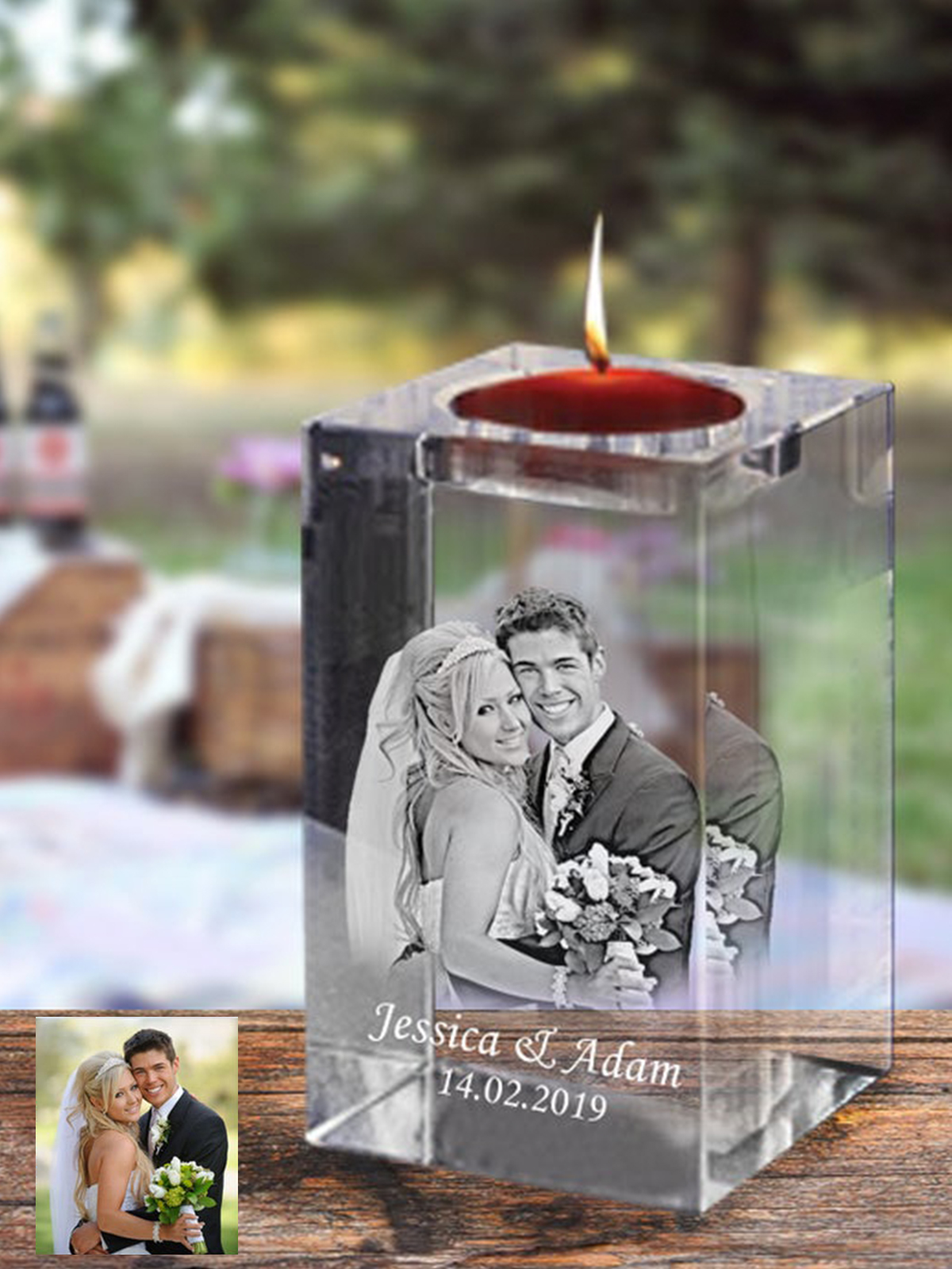 Personalize a Laser Engraved 3D Photo Crystal Candle Holder for a unique gift. Perfect for anniversaries, weddings, or as a heartfelt memorial. Light up precious memories!