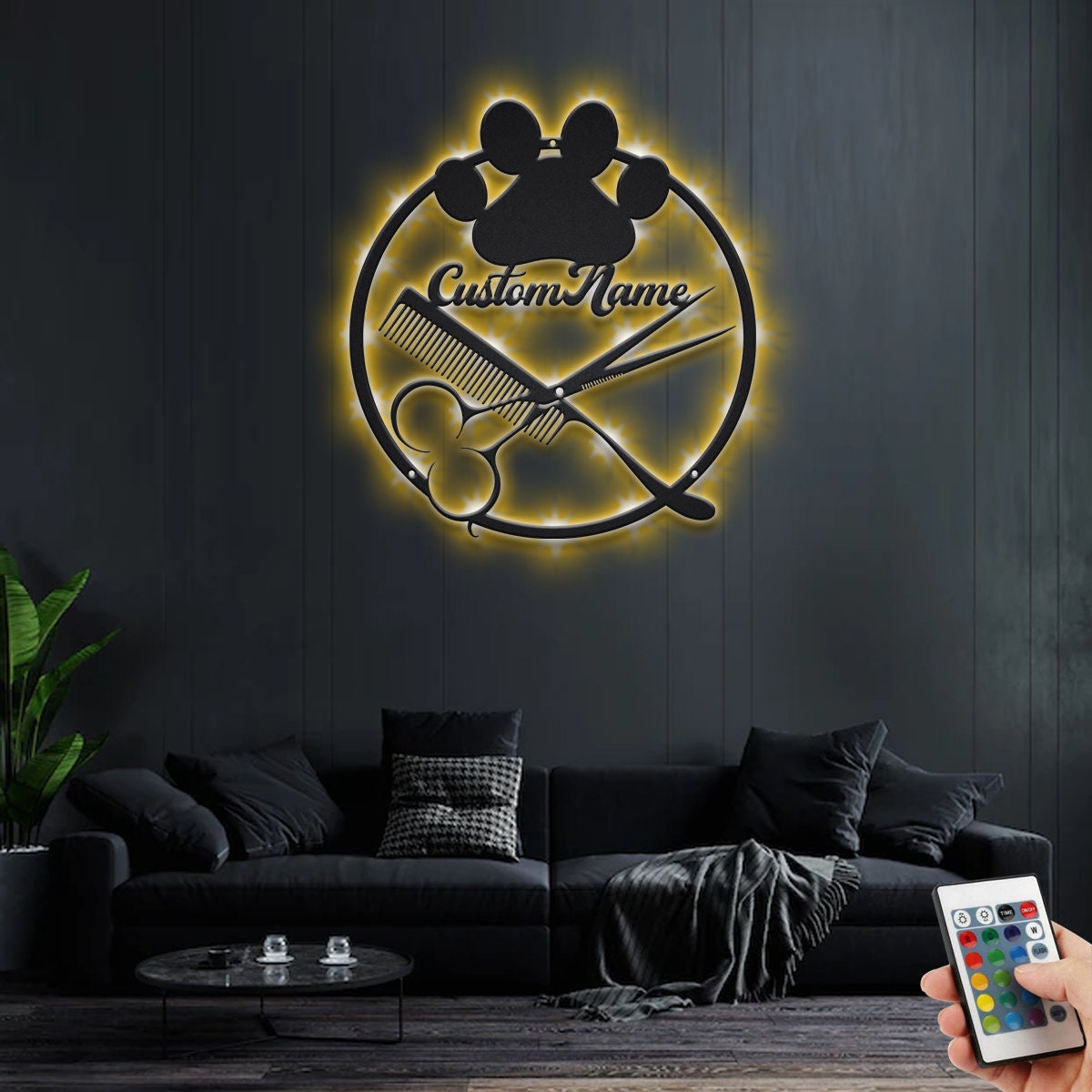 UnusualStandout #710 Personalized Dog Grooming Hair Salon Metal Wall Art With LED Light